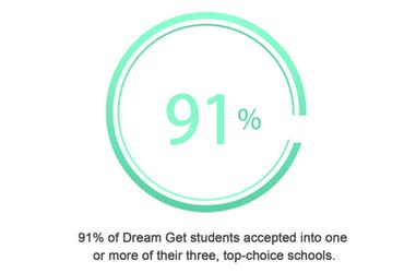 Dream Get services are personalized to fit each student’s needs and goals, integrating counseling, academic advising, tutoring, and research services in order to maximize student outcomes and ensure that they are getting the most out of their Dream Get experience. Our results speak for themselves, with 91% of Dream Get students gaining admission into one or more of their three top-choice schools.